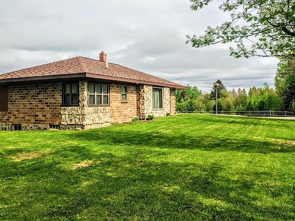 Check out this beautiful brick home with stone accents located just South of Butternut WI on State Hwy 13. This well maintained 2-bedroom, 1 bath country home with a 1 car attached garage sits on 1+ acres giving you a nice yard to enjoy. The home has newer flooring, windows, interior and exterior doors and features a spacious sun deck and patio area. Inside the house is a large functional kitchen with newer stainless appliances and plenty of storage. It is also open to the dining area and living room. The bathroom is updated with a newer vanity cabinet, faucet, shower/tub surround and flooring. The master bedroom has double closets, an office or reading area along with french doors that lead to the back deck. The second bedroom is currently being used as an office/laundry room; the laundry could be relocated back to the basement as well. The full basement is very clean and bright and offers plenty of additional storage space for all your additional items. There is a garden shed also.