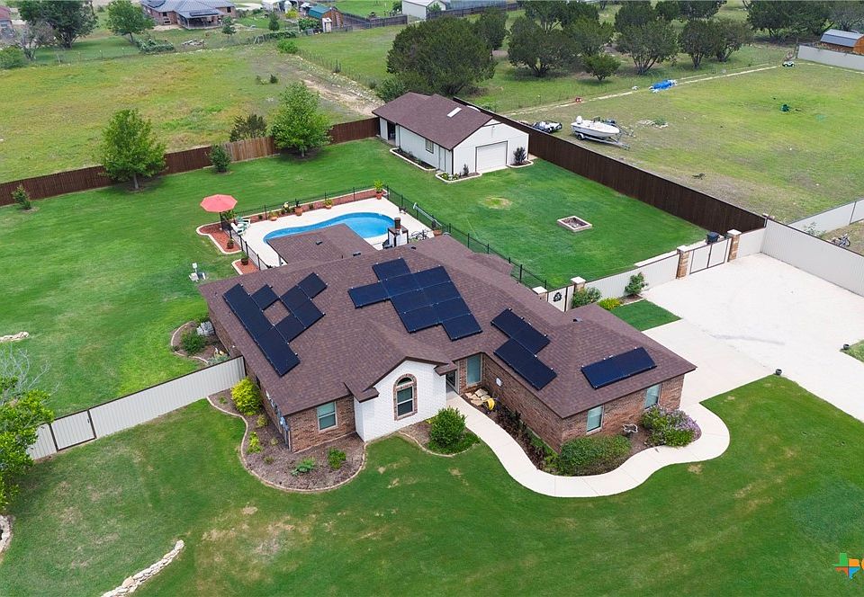 BACK ON MARKET!!!! Paid off Solar panels, Pool, New Roof, OUTSIDE City Limits and much more... Escape the hustle and bustle of city life with this serene retreat nestled in the outskirts of Killeen, Texas. Boasting four bedrooms, two baths, and sitting on nearly an acre of land, this meticulously crafted home offers the perfect blend of comfort and tranquility. KEY FEATURES: 1. Spacious Accommodation: With four bedrooms and two baths, there's ample space for family living or hosting guests. Each room is thoughtfully designed to maximize comfort and functionality. 2. Modern Amenities: Enjoy the perks of modern living with a new roof, newer energy-efficient windows, and solar panel power. The solar panels are not only paid off but also contribute to energy efficiency, further reducing utility costs and environmental impact. 4. Secure and Private: The property is ENTIRELY enclosed with a solar power gated entry at front of property line, providing security and FULL privacy for you and your loved ones. 5. Leisure Oasis: Dive into relaxation with your very own enclosed pool. Designed with safety in mind, parents can rest easy knowing that children are protected from pool hazards. 6. Location: