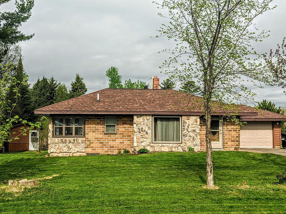 Check out this beautiful brick home with stone accents located just South of Butternut WI on State Hwy 13. This well maintained 2-bedroom, 1 bath country home with a 1 car attached garage sits on 1+ acres giving you a nice yard to enjoy. The home has newer flooring, windows, interior and exterior doors and features a spacious sun deck and patio area. Inside the house is a large functional kitchen with newer stainless appliances and plenty of storage. It is also open to the dining area and living room. The bathroom is updated with a newer vanity cabinet, faucet, shower/tub surround and flooring. The master bedroom has double closets, an office or reading area along with french doors that lead to the back deck. The second bedroom is currently being used as an office/laundry room; the laundry could be relocated back to the basement as well. The full basement is very clean and bright and offers plenty of additional storage space for all your additional items. There is a garden shed also.