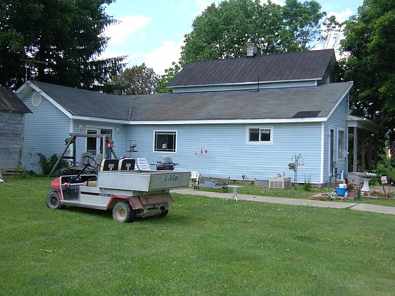 Delightful remodeled country home situated on dormant par three golf course. Property is 15 acres. Six ponds formerly used to irrigate golf course. Both a 40x70 steel garage (houses up to 8 vehicles- has 3 8x12 doors) and a 60x12 mobile home (not plumbed- With new septic, three rooms and half bath). Property has 3 wells and 2 septic systems. Home has sugar maple laminate floors, new windows, gutters, front porch.