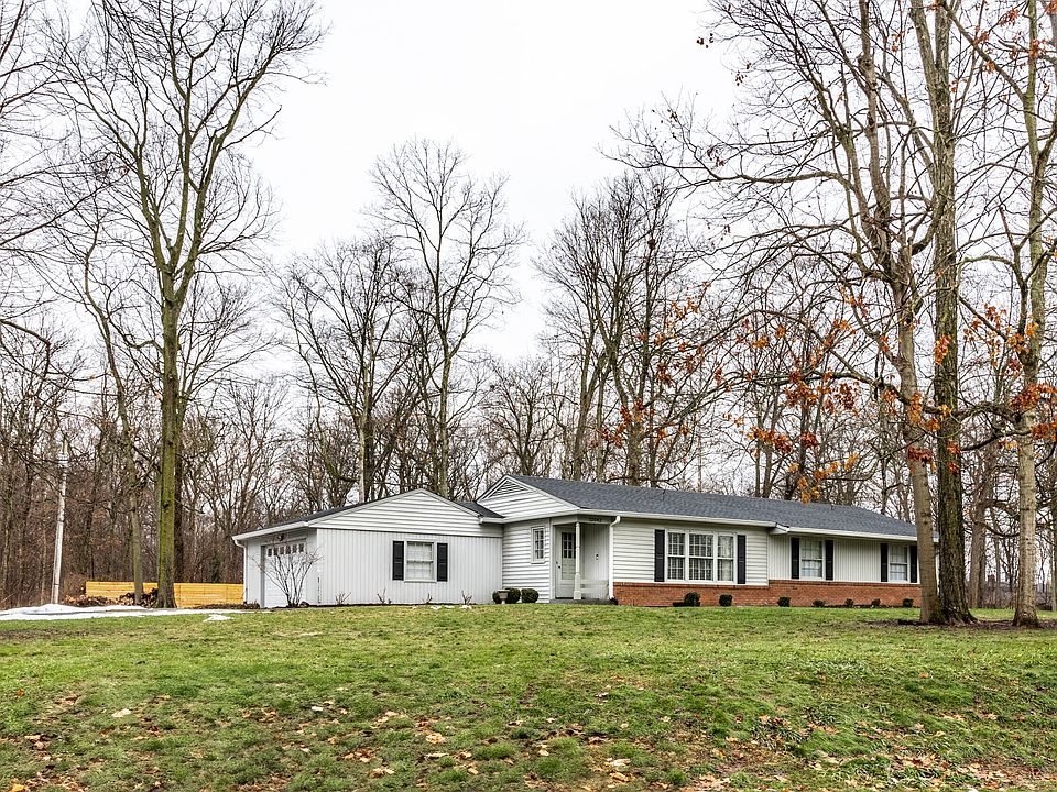 Beautifully updated 3BR/2BA ranch in prime Carmel location! This charming home offers nearly 1500 sq ft of main floor living space on a stunning .7 acre lot with mature trees, providing a private and serene setting. Enjoy a completely updated interior, perfect for modern living. Relax on the covered back patio, ideal for outdoor entertaining. The unfinished basement offers endless potential for future expansion. And did we mention no HOA! Updates in 2021: new roof, HVAC, plumbing, electrical, brand new kitchen with widened layout and stainless steel appliances, hardwood floors, all new bathrooms, tankless water heater, and more! Don't miss this incredible opportunity to own a piece of Carmel paradise!