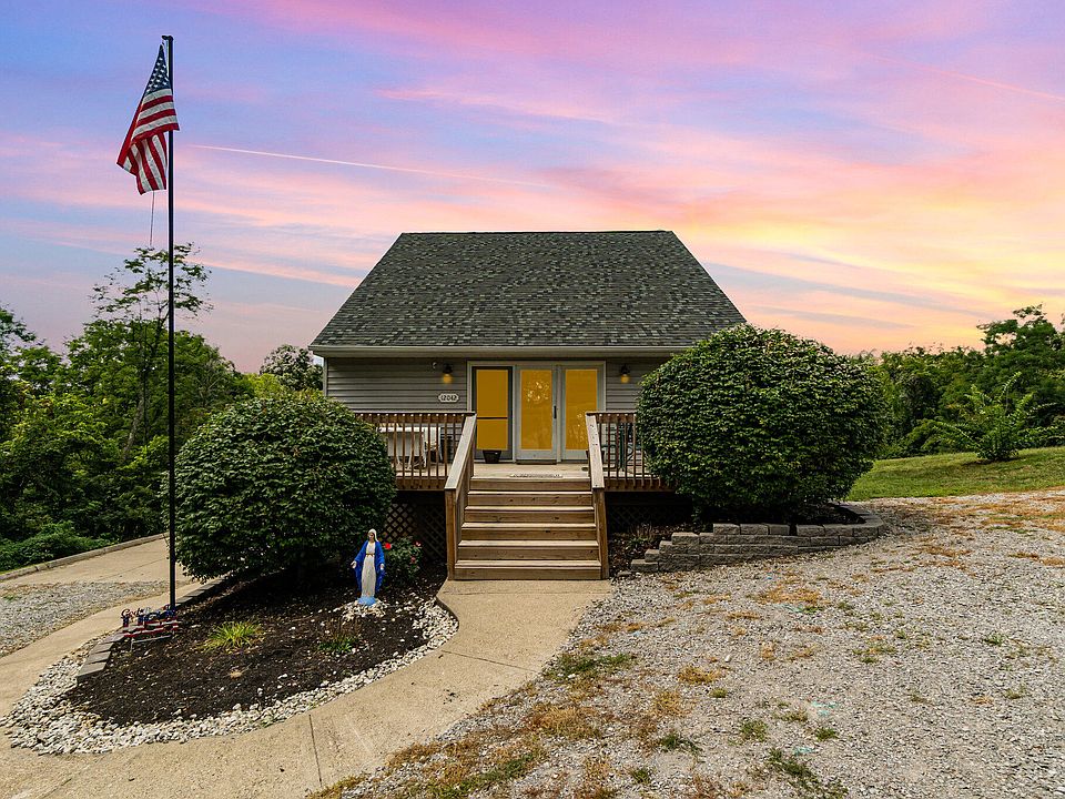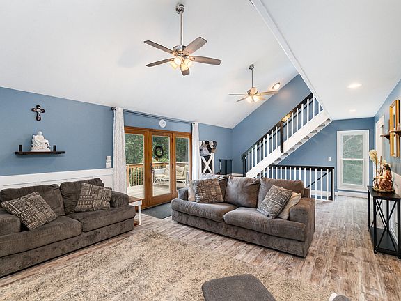 Enjoy country living while still being close to everything. This home offers lots of newer updates that includes a full finished basement. Open floor plan with vaulted ceilings, newer deck and covered patio. Area around home is surround by woods and wildlife. Enjoy the sunsets from your deck in the evening and watching the deer and turkeys graze in the mornings or really anytime of day. Large shed outside next to a Large Garden ready for you to plant your favorite vegetables. Square footage shown on floor plan.