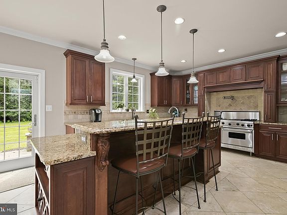 12042 Steven Lane is a wonderful residence in the water privileged custom home community of Patuxent Palisades along the Patuxent River. Quietly set within this tree-lined community you are welcomed to this stunning home among a peaceful and private setting. Perfectly situated on 1.28 acres, extraordinary design meets comfort in this expansive one-of-a-kind home with well-curated living spaces with sophisticated moldings, lofty windows, soaring ceilings, Brazilian cherry hardwood flooring, high-end kitchen and baths, custom built-ins, generous room sizes, design-inspired finishes, and so much more. An awe-inspiring interior is introduced by the welcoming foyer with the double door entry and two story ceiling. Anchored by the foyer is the lovely formal living and dining rooms, well-suited for intimate entertaining and celebratory meals highlighted by crown molding, box wainscoting, and a cozy fireplace. A butler's pantry between the dining room and kitchen makes entertaining a breeze. Inspire your inner chef in the kitchen with distinguished 42-inch cabinetry, granite counters, stone backsplash, prep sink, high-end stainless steel appliances including a Viking range, built-in GE Monogram refrigerator, built-in convection microwave, and a custom range surround with pot filler. The kitchen also highlights a center island with breakfast bar, casual dining space, pantry, and planning station. Spend quality time with loved ones in the family room; situated off the kitchen, this bright and comfortable room is complemented by a soaring two story coffered ceiling and cozy fireplace flanked by French doors and Palladian windows on either side. A main level bedroom with walk-in closet could also serve as a home office. This level is concluded by two powder rooms on either side of the main level, a mud room with drop-zone and laundry room off the kitchen and garage. The substantial upper level is an exciting collection of 4 bedrooms and 3 full baths that is accessible from either the foyer or kitchen staircases. The upper level begins with a spacious loft offering built-in storage cabinetry. The primary bedroom is a true sanctuary, boasting a spacious layout with a deep tray ceiling, sitting area, and two walk-in closets. The primary bath is reminiscent of a luxury spa with all the elements of two bathrooms in one: a soaking tub, two vanities, two showers, and two water closets, all accented in marble. Further, the upper level provides a second bedroom with a private en-suite bath, as well as third and fourth bedrooms with a connecting bath, each with a separate vanity. The sprawling lower level is an entertainer's dream with a second family room, expansive recreation room with a custom built-in bar with granite counters, pendant lighting, and niches on either side, one which serves as a bar kitchenette with sink and cabinets. Arguably the most exciting part of the lower level is the wonderful theater room complete with a concession area with beverage refrigerator, as well as comfortable tiered seating, projector, and sound system. The lower level also offers a wide set of stairs to the backyard and a large storage room. Enjoy outdoor entertaining on the sizable patio with stone accents and perimeter landscaping. You will love the expansive level backyard and privacy provided by the wooded view. Additionally, this home features a side loading 3 car garage with 8-foot doors and high ceilings with the ability to accommodate a car lift. Located along the Patuxent River in Southern Maryland, this area is a boater and fisherman's dream, yet is still commuting distance to DC. The Patuxent Palisades community features a pier for fishing and a boat ramp for other fun water recreation activities and sports. There is also a community pond with a bridge to a center island with benches and play area. Impeccably designed, this home is an image of privacy, quality, and tranquility and is truly the embodiment of Southern Maryland's good life.