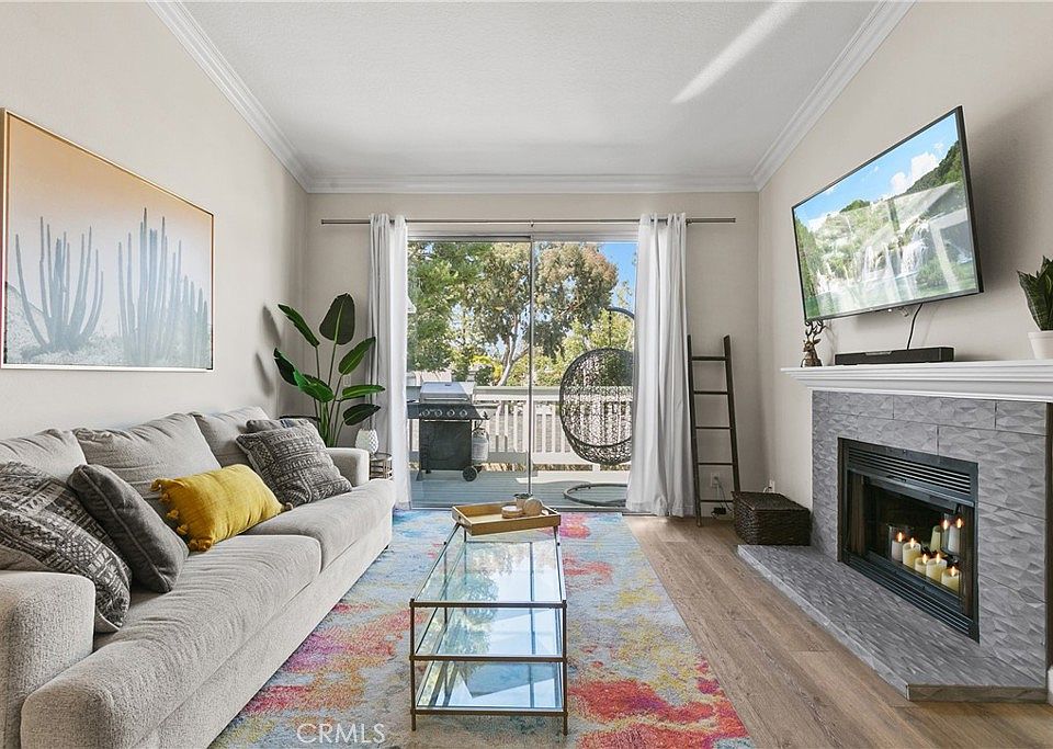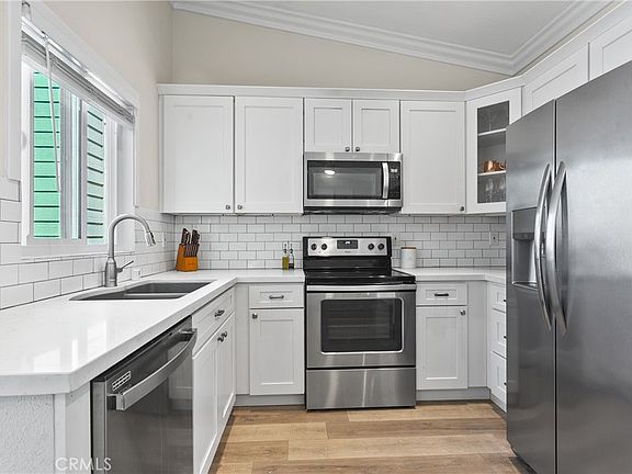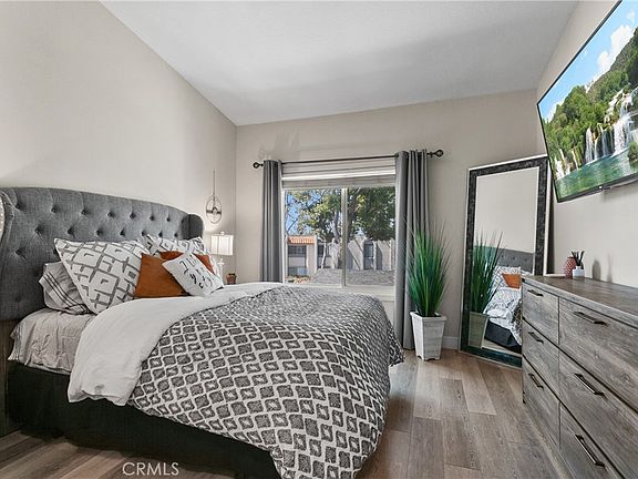 Discover Comfort and Convenience in This Exclusive Gated Community! Step into this turnkey, spacious 1-bedroom condo that seamlessly combines modern luxury with everyday functionality. Designed for an exceptional living experience, this home features LIGHT AND BRIGHT interiors, HIGH CEILINGS, and sleek laminate flooring. The heart of this home is the updated kitchen equipped with STAINLESS STEEL APPLIANCES, stunning QUARTZ COUNTERTOPS, and innovative SOFT CLOSE KITCHEN CABINETS AND DRAWERS, perfect for culinary enthusiasts. Convenience is at your fingertips with an INSIDE LAUNDRY and AIR CONDITIONING for those warmer days. Relax in the airy primary bedroom, enhanced by a NEWER DUAL PANED WINDOW that ensures peace and quiet while offering energy efficiency. The generous OVERSIZED CLOSET provides ample storage, complemented by a stylish DUAL SINK VANITY in the bathroom, making your morning routine a breeze. Step outside onto your own BALCONY WITH A VIEW, where you can relax and take in the serene surroundings. The condo also benefits from GUEST PARKING, making it easy for friends and family to visit. With access to a COMMUNITY POOL and located in a PET-FRIENDLY environment, this home is ideal for both relaxation and socializing. Positioned conveniently near freeways and top-rated schools, this property offers a perfect balance of peaceful living and accessibility. Don't miss the chance to make this oasis your new home!