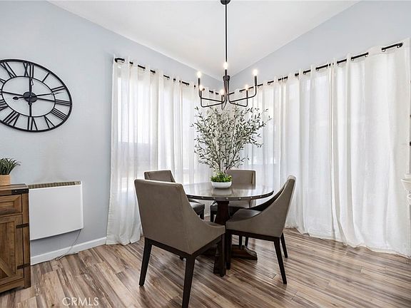 Welcome home to this beautiful and coveted upstairs unit in Fountain Valley's New Chase Condominiums. This home boasts tons of light with an open and airy feel due to the vaulted ceilings and large windows and sliders. With fresh paint, wood-like laminate flooring, stainless steel appliances and new modern lighting fixtures, the property is turnkey and ready to move-in! When you walk into the home, you are treated with soaring ceilings and cozy brick-lined fireplace to cozy up in front of during a cold night. A separate dining area, framed by a beautiful chandelier, can accommodate a table for all of your family, or belly up at the eat in bar at the kitchen for a quick meal. The light and bright kitchen boasts stainless steel appliances and tons of cabinet and countertop space, making it easy to store all of your kitchen gear out of sight. Head down the hallway to find the first bedroom with brand new mirrored closet doors, then open the door to the dedicated in unit stackable washer and dryer. The full shared bathroom has a door from the hallway and one into the primary bedroom for easy access from both bedrooms. The primary bedroom with vaulted ceiling and a large slider out to the balcony allows for more light and plenty of space for a large bed and all of your furniture. A large walk-in closet has plenty of space for all of your clothes and storage needs. The dedicated balcony has two large sliders to access it from both the dining area and the primary bedroom, for easy access to enjoy a quiet moment or to access the extra storage closet. Wall heaters in the living room and both bedrooms is an efficient and effective way to keep the temperature perfect during the cold months and the central AC will keep you nice and cool when it gets warm. New Chase HOA is an absolute value at $515/month as it includes gate community access, a pool and spa, common area and exterior maintenance and also includes water (hot and cold), sewer, and trash. An assigned detached carport (#251) and lots of open parking spaces insure there is plenty of parking for you and your guests. Excellent schools and close proximity to everything Fountain Valley has to offer rounds out this amazing opportunity at home ownership. Come quick, this one won't last long.