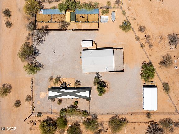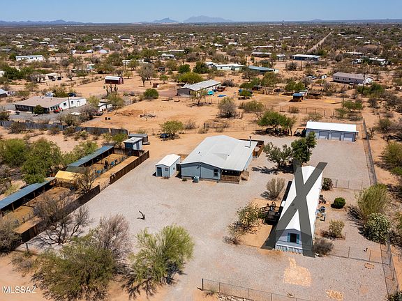 * Incredibly maintained manufactured home on over one acre, property includes a double wide with three bedrooms two baths with split floor plan, Add on is an 800 square foot media room, with fireplace and built-in surround sound ceiling speakers, 3 decks and dog run, carpet and luxury vinyl flooring throughout, multiple storage units on property, new roof, and AC. One Storage shed is currently being used as an office, unit is cooled with laminate flooring. Large metal garage with three bays and storage area. Property also includes 4 corrals for cows or horses. The property is zoned for two homes and has room for an additional manufactured single-wide home with separate utilities and septic. Great for a rental or guest quarters. $4000 carpet credit to buyers.