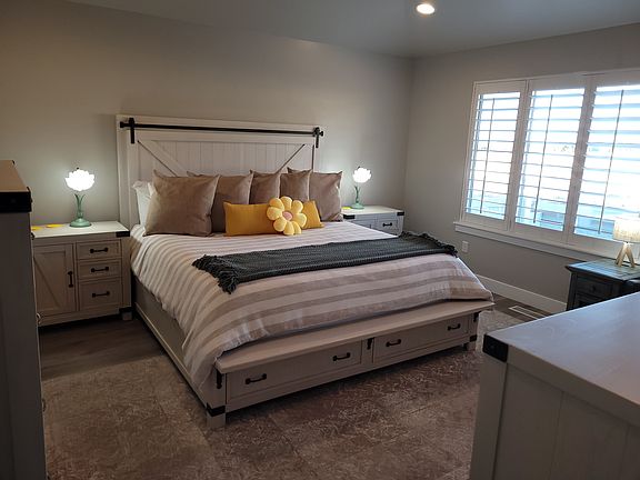 Welcome to this stunning rambler-style home in the desirable Stirling Pointe at Skye Estates. All ages can live in this unit of the 55+ community. Enjoy the short drive to Traverse Mountain shopping and American Fork canyon. Community amenities are abundant, with access to a clubhouse, swimming pool, exercise room, and a park/playground. The HOA takes care of all yard work, and snow removal,allowing you to relax and enjoy your surroundings. The exterior boasts double-pane windows, sliding glass doors, Ring cameras, and storm doors. Inside, you'll find a spacious and inviting living area with vaulted ceilings, granite countertops, plantation shutters, and a smart thermostat system for modern living. The main level offers a grand master suite complete with a separate tub and custom shower, walk-in closet with a washer and dryer (included). The open-concept great room flows seamlessly into the chef's kitchen, featuring an expansive granite island, double ovens, a gas range, stainless steel refridgerator (included) reverse osmosis drinking water, and a built-in dishwasher. The lower level provides a fantastic mother-in-law apartment, including a second kitchen, refridgerator (included) a great room, and separate laundry facilities (included), making it perfect for guests or extended family. Additional features include a den/office, a bonus room, and accessibility enhancements such as a ramp in the garage, grab bars, and 32" wide doorways. This home also offers garage and basement storage, a high-efficiency furnace, a water softener, a whole home humidifier, and radon mitigation for peace of mind. 12 Month lease minimum. Utilities Not Included: Highland City utilities, Rocky Mountain Power, and Enbridge (formerly Dominion Gas). HOA fees and Centurylink internet are included in rent. No smoking. No pets. Schedule your private tour today to experience the perfect blend of luxury, convenience, and functionality in this exceptional home! Utilities Not Included: Highland City utilities, Rocky Mountain Power, and Enbridge (formerly Dominion Gas). Included in rent: HOA fees and Centurylink internet Exterior features include access to a fitness center, pool, and parks Landscaping and snow removal is included. The home is wheelchair accessible with a ramp in the garage Must agree to Stirling Point and Skye Estates HOA rules No Smoking, No pets