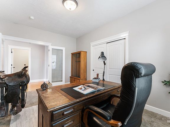 Positioned on the peaceful outskirts of Kuna, this stunning 5-bedroom, 3-bathroom home offers 2,543 sqft of comfortable living space on a generous half-acre lot with no rear neighbors. The serene backdrop of open space and mountain views creates a sense of privacy and tranquility, perfect for those seeking a retreat from the hustle and bustle. The main-level primary suite provides convenience and comfort, while the thoughtfully designed layout ensures ample space for family and guests. Recent upgrades elevate the home's appeal, including a 3-year-old water heater, new carpet in the living room, fresh interior paint, a new furnace, and a new AC unit. Step outside to enjoy the covered patio, an ideal spot for morning coffee or evening gatherings. The property also features an impressive swim spa for year-round relaxation and uncovered RV parking for added convenience. Experience the perfect blend of rural charm and modern comfort — this Kuna gem is ready to welcome you home.
