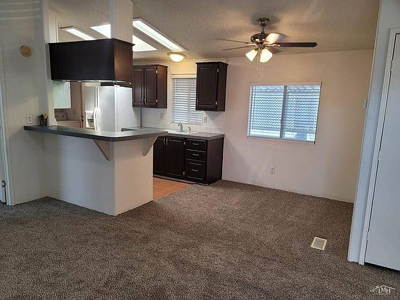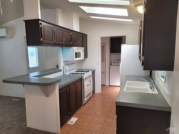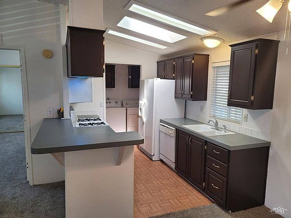 This stunning 2001 manufactured home is located in a beautifully maintained all-ages community. It has a charming exterior with a light-colored facade and trim, complimented with a contrasting dark shingle roof. The home has an attached 2 vehicle carport and a small storage shed for additional storage. Upon entering the home, you are greeted by a bright living room; this living room boasts a large window that allows plenty of natural light, making it the perfect space for relaxation and entertainment. The home features a split floor plan, with the main bedroom located at one end of the home, and the other two bedrooms on the opposite end. The main bedroom features a large window that lets in plenty of natural light; it also includes an en- suite bathroom. The other two bedrooms feature closets with ample storage space; these bedrooms share a bathroom that has a skylight. The kitchen is the heart of the home; it offers a microwave over the stove, a dishwasher and a refrigerator. It also has a skylight and beautiful cabinetry. The dining area is located adjacent to the kitchen, making it the perfect space for your meals and entertaining guests. The home features an upgraded Ductless A/C system that provides efficient and effective cooling throughout the home. This system is both energy- efficient and quiet, providing a comfortable living environment all year round. The home also has an indoor laundry room with a washer and dryer, making laundry day convenient and hassle-free. Overall, this 3 bedroom, 2 bathroom, 2001 manufactured home is the perfect combination of modern design and functionality. The upgraded features, such as the split floor plan, skylights in the bathrooms and kitchen, upgraded ductless AC system and parking for 2 vehicles, make this home a highly sought-after property in this all age community. With all appliances included, this home is move-in ready and waiting for its new owners. LBE6950.