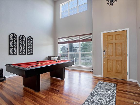 PRICE REDUCED $35K FOR QUICK SALE! Welcome to this spacious two-story home in a quiet Parker cul-de-sac located in Canterberry Crossing, complete with 6 bedrooms and 3 1/2 bathrooms! Be welcomed by a large covered front porch overlooking the cul-de-sac. Inside you'll love the extensive cherry hardwood floors throughout the foyer, formal living dining room and hallway. The gourmet kitchen features tile floors, stainless steel appliances including a 5-burner gas cooktop, wall oven, microwave, dishwasher and included refrigerator. There's also a pantry, island, eat-in kitchen nook and extra counter space perfect for entertaining. Adjacent to the kitchen is a soaring two story family room with gas log fireplace and a wall of windows. This level also houses an office, laundry room with included washer and dryer with cabinets and a utility sink, as well as a powder room with updated vanity. Upstairs you will find a large primary bedroom featuring stunning mountain views, a 5-piece en-suite and a spacious custom walk-in closet. This level offers a desk/homework station, 3 good sized bedrooms and a full bathroom with dual sinks. The garden level basement has been finished to include a large versatile great room, 2 large bedrooms, a full bathroom and storage space. Outside, enjoy mountain views from the beautiful low-maintenance composite deck including a built-in hot tub, mature landscaping as well as a 3 car garage. Great location with a short walk to the middle school, high school and local Coffee shop! Residents of Canterberry Crossing enjoy a community pool with water park, tennis courts, beautiful parks and walking trails.