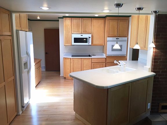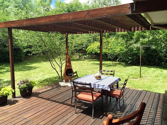 Extraordinary SOLAR powered home. Innovative remodel! Open, inviting kitchen/dining area. Walkthrough to charming solar room: wood stove, Anderson windows, utility desk. Dream kitchen: skylight, peninsula counter, tons of maple drawers/cabinets, butcher block, new cooktop/convection microwave/dishwasher; convection oven. Curb appeal!: flower beds, rose garden, patio w/ view. 1/3 acre. Private back SANCTUARY: mature trees, huge flat yard, redwd deck w/ trellis, 8-zone sprinkler, awesome irrigated vegetable garden. $15,000 OWNED solar system -$600 in rebates last 12 mos! Deep garage: work bench/storage. Gorgeous floors: oak in living and dining rooms, hallway, bedrooms; maple in kitchen. Master w/ walk-in, private bath. Updated full bath for 2 bright bedrooms. Basement: family room, brick-hearth wood fireplace, 2 bedrooms, updated 3/4 bath; huge laundry/storage room. Brand new carpet/paint, 2012 roof, newer furnace, brick veneer, vinyl siding, attic fan, updated vinyl windows throughout.