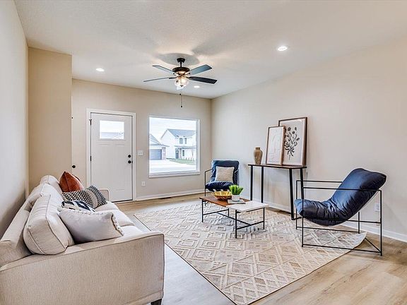 Spacious five bedroom floor plan in desirable Fox Creek in Maize. "The Chuck" floor plan offers three bedrooms on the main floor and two additional bedrooms in the basement along with large family room area. The neutral decor allows for any color palette you may choose. Interior finishes include Natural Cream wall color with Shelby Oak luxury vinyl throughout the main floor living area. Bedrooms and family room feature Beachcomber High Tide carpet. Kitchen features white cabinetry and quartz countertops and subway tile backsplash. Stainless range, dishwasher and microwave are included. Lawn, well, sprinkler and fence included in sales price. AGENTS GENERAL TAXES HAVE NOT BEEN ASSESSED. PLEASE VERIFY SCHOOL, TAX AND HOA INFORMATION. THERE WILL BE AN HOA BUT WE DO NOT HAVE THE FINAL FEES AS OF YET, THEY ARE ESTIMATED. ROOM MEASUREMENTS ARE ESTIMATED.