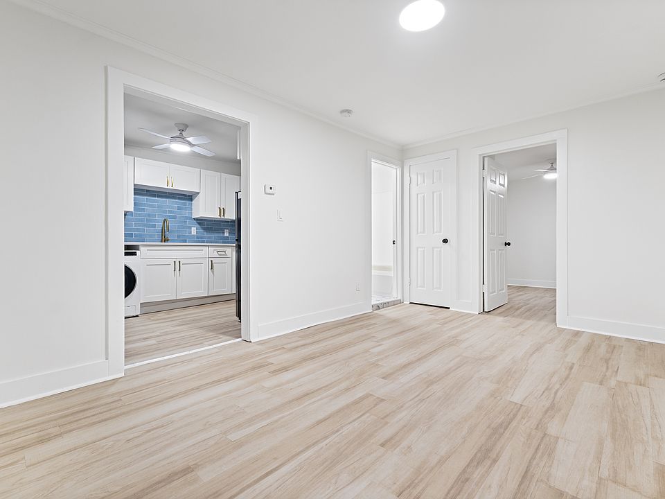 Kitchen with updated finishesOn-site parkingGas stoveModern updatesIn-unit washer and dryer