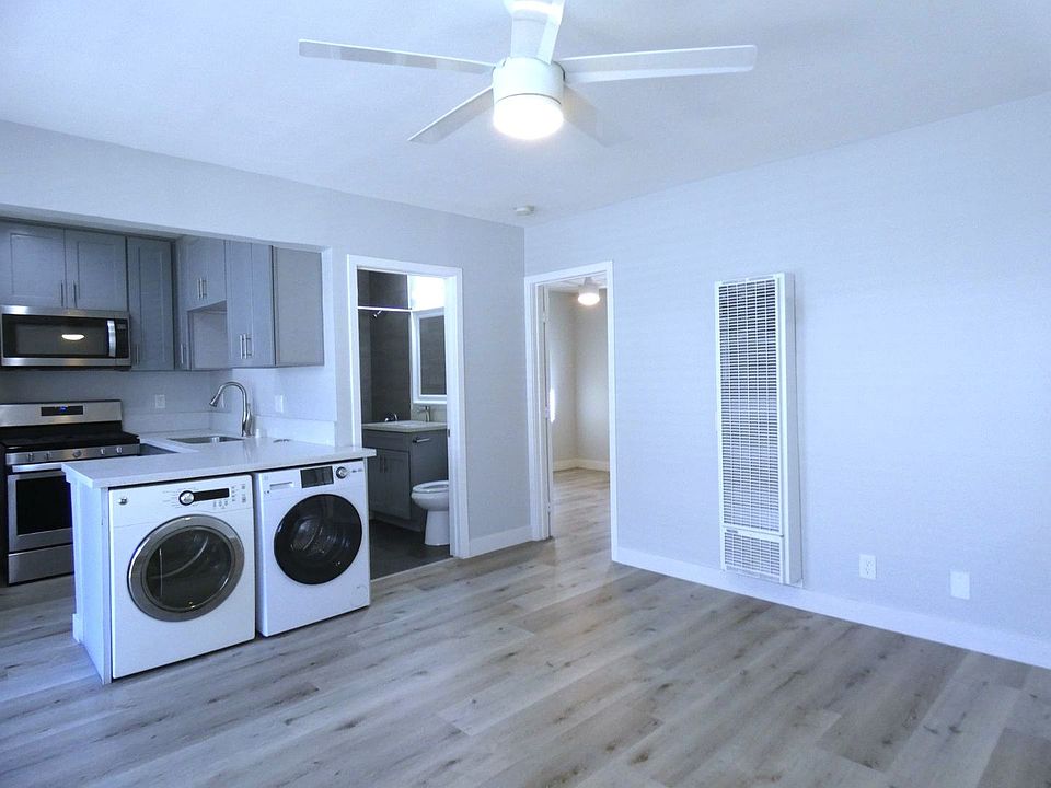 Welcome to your new home in the heart of Long Beach, CA. This 2-bedroom, 1-bathroom apartment offers a blend of comfort and style. The kitchen is equipped with a gas stove, granite countertops, and comes with a fridge, microwave, and dishwasher (all as is). The apartment features new vinyl click flooring throughout, with ceramic flooring in the bathroom for an added touch of elegance. The two-tone paint and blinds/window screens throughout the apartment provide a modern and stylish aesthetic. For your convenience, the apartment is fitted with a gas wall heater and ceiling fans to ensure a comfortable living environment all year round. The building also offers on-site laundry facilities for your convenience. Please note, this is an upstairs unit and street parking is available.