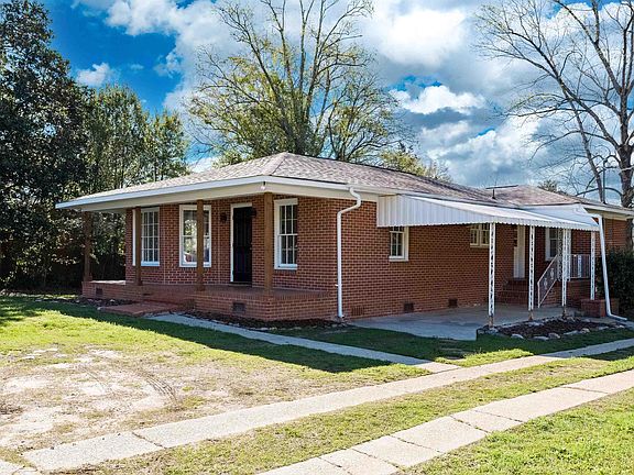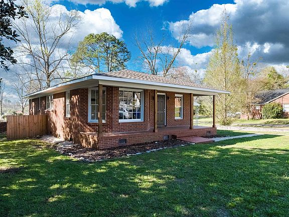 Charming, all brick, mid-century home! It features a large porch with columns which expand across the entire front of the house. Step inside to the living area which features a wide bay window providing lots of natural light. The dining area has 2 windows which make the room feel light and airy. You'll love the open kitchen with its granite counters, plenty of cabinets for storage, and a stainless steel sink with 2 windows above. All the kitchen appliances remain with the home, including the refrigerator, gas stove/oven, dishwasher, PLUS the washer and dryer! The primary bedroom has a double window and a ceiling fan. The ensuite primary bathroom is beautifully updated with a large tub/shower combo. There are also 2 good-sized guest bedrooms and a second fully updated bathroom. The home has a partial basement providing lots of storage space. The large backyard has plenty of room to add a patio, an outdoor fireplace/firepit, or even a vegetable garden.