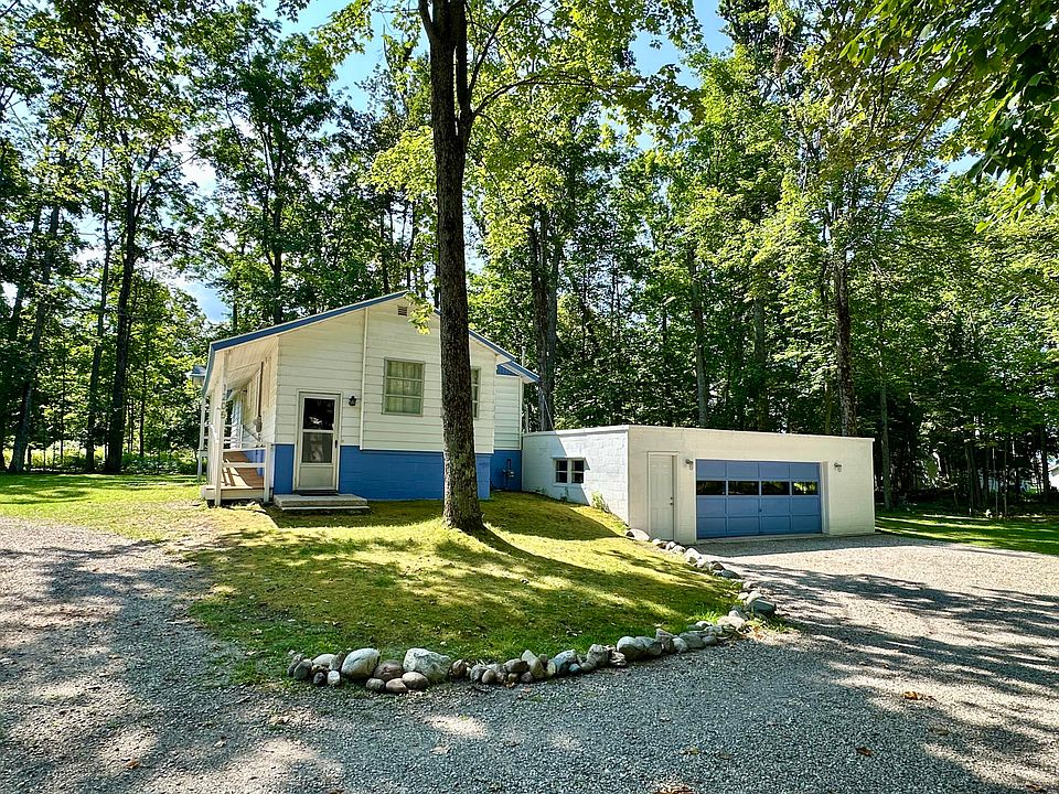 Discover the perfect blend of comfort and nature in this spacious 1,500+ sq ft home nestled on over 2 wooded acres with 67 feet of frontage and a large lawn on pristine Mullet Lake. Whether you're seeking a year-round residence or a seasonal retreat, this property offers it all. Enjoy two full bathrooms, a large garage for all your gear, and premium lakeside storage for your water toys and outdoor essentials. Located off a paved road with direct access to the scenic rail-trail, it's ideal for biking, walking, and snowmobiling adventures. Stay connected with Charter high-speed internet and cozy all Winter with economical gas forced-air heat prompted by a smart thermostat that anticipates your arrival. Just a short stroll from the Aloha Camp Store and only 10 miles from the amenities of Cheboygan via State Highway 33, you'll have both tranquility and convenience at your fingertips.110' Sure-Step dock included. Expansion-ready with driveway-approach and clearing for outbuilding already prepared.