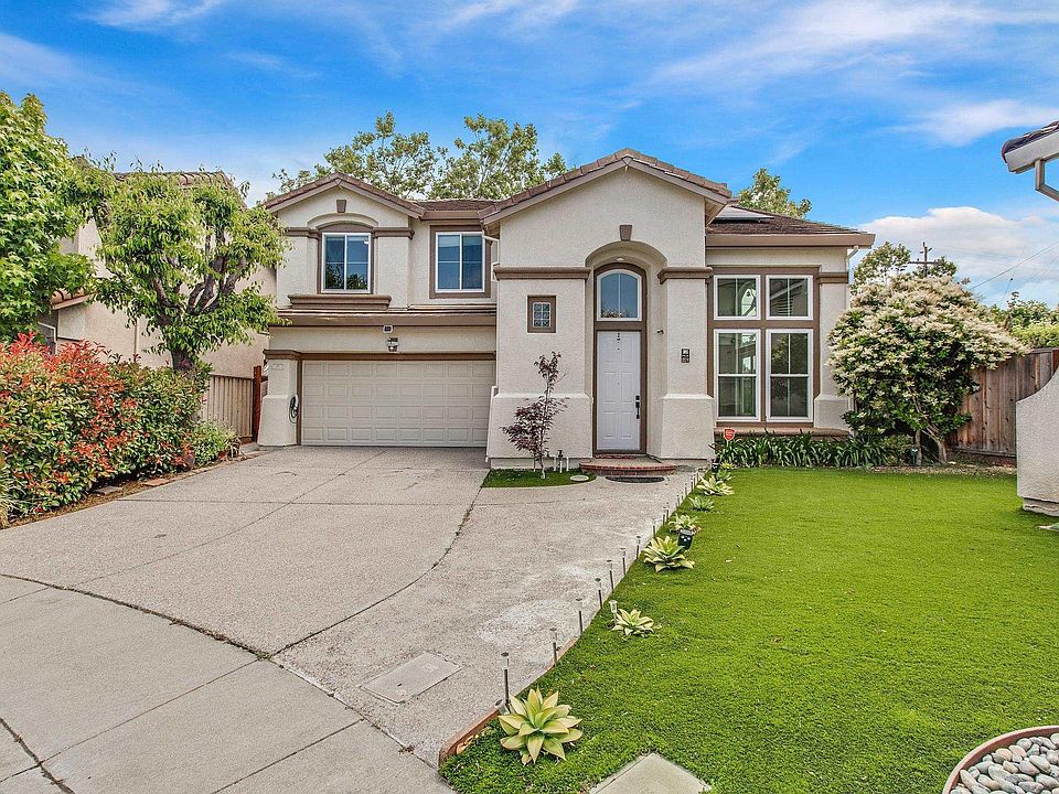 In an exceptionally convenient central location of San Leandro. 4 spacious bedrooms and 2.5 baths, 1,742 sq ft home offers an updated kitchen and bathrooms. Deluxe kitchen with quartz counters, stainless steel appliances, recessed lighting, breakfast bar, tile floor. Living and dining room combo with wood floor, chandelier lighting, large picture windows. Large primary suite with updated closet. Bathrooms feature dual vanity sinks with quartz top, stall shower, tile floor. Drought resistant landscaping in front and backyard, fruit trees, koi pond, 2 car garage, solar panels, tesla charging, central heating and air, Nest thermostat, gas fireplace, spacious storage shed, covered sunroom, laundry room, dual pane windows, corner lot. Short drive to BART for an easy commute. World-class food, shopping and parks. Close to 880 FWY, downtown San Leandro, Costco, Marina Plaza, Kaiser, Golf Club, Banks. A must see.