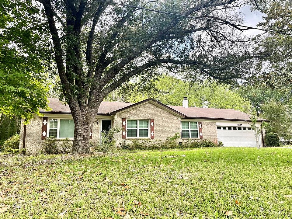 With three bedrooms and two bathrooms, this home boasts a convenient layout with added space that's perfect for comfortable living. It is on almost 2 acres, situated just outside the city limits, giving residents a convenient location that is still close to all the excitement of city life. The kitchen features butcher block counter tops & new cabinets that perfectly complement the tile flooring throughout the kitchen and dining areas. You can cozy up to the beautiful, brick gas fireplace in the flex space. This is the lot you've been dreaming of, with ample space for a large home and lush vegetation. Enjoy the beauty of pecan and magnolia trees in your own backyard. Come check it out while you can!
