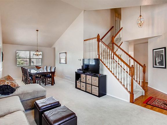 Immaculate two story with beautiful mountain views. Features include: Hardwood entry, vaulted ceilings, formal dining room, cheerful gourmet kitchen with slab granite counters, center island with counter bar, hardwood floors, pantry and breakfast nook open to the rreat room w/ gas fireplace and walk-out to the deck. Upper level has a vaulted master bedroom with adjoining five piece master bath, two spacious secondary bedrooms and a full bath complete the upper level. Spacious walk-out lower level family room and adjoining game room, an additional bedroom and quarter bath makes an ideal space for guests. Close to Hiking trail and in sought after D20 school district. HOA dues include full service lawn care, lawn irrigation, snow and trash removal. Don't miss this one!