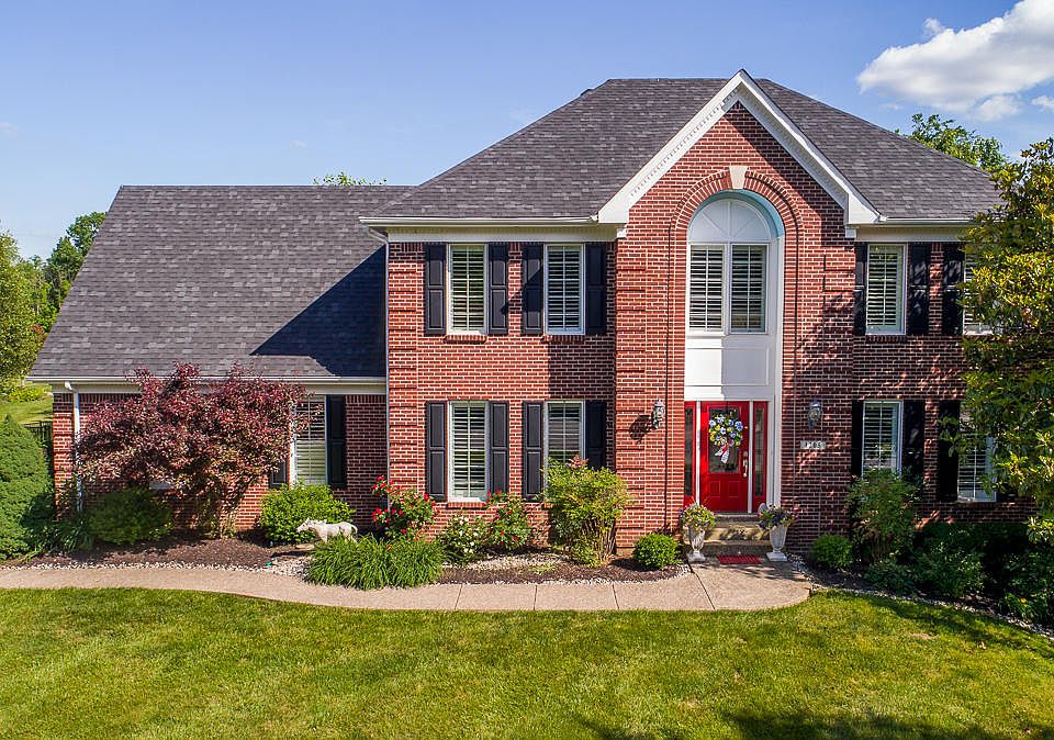 Reduced Price!!! Stunning 5 Bedroom 3.5 bath home located on the golf course in Persimmon Ridge. Designer decorated, custom plantation shutters in all windows. Hardwood floors on entire 2nd floor and all of main floor except tile in kitchen, all new basement flooring with the look of wood. Extensive crown molding, dentil molding and wainscoting. Brand new roof, balcony off master bedroom and 3 sliding glass Pella doors in 2016 plus numerous other updates! The stunning eat-in kitchen has granite counters, an island, stainless appliances with a Bosch dishwasher and French doors opening to the beautiful back yard with golf course and pond views. Amazing large family room with built in bookcases with inside lighting and a Heat and Glow gas fireplace. New landscaping and outside night lighting