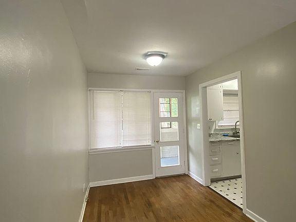 Two bedroom, one bathroom apartment (end unit of 4-plex) featuring living/dining combo, kitchen with range, and fridge. Bathroom with ceramic tile tub surround and vanity. Hardwood floors, laundry room, gas hot water, gas central heat and air. Lawn care provided. Pest Control Provided. No pets. No Section 8.