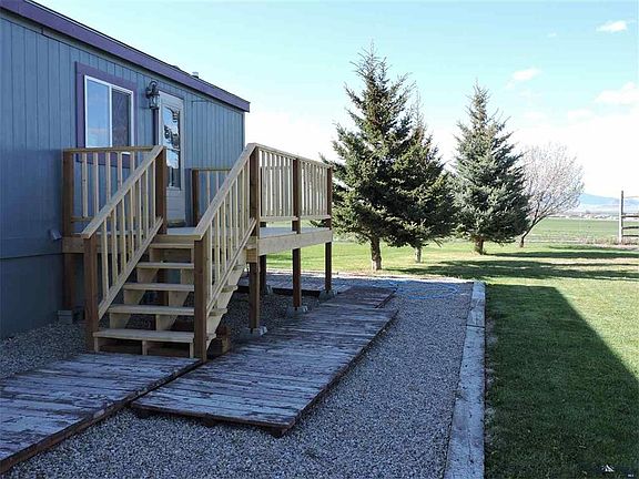 Sweet little spot with 3 BR, 2 bath manufactured home on partially finished basement. 7 irrigated acres with West Side Canal shares. Several outbuildings including 2 insulated workshops, greenhouse, sheep pens or convert one for chicken house. All irrigation equipment conveys with the sale. Nice open living and kitchen area with 1064 SF on main floor with 2 BR, 2 baths and basement area has egress windows with one finished bedroom and lots of space for expansion of more living area. Landscaped and 2 decks