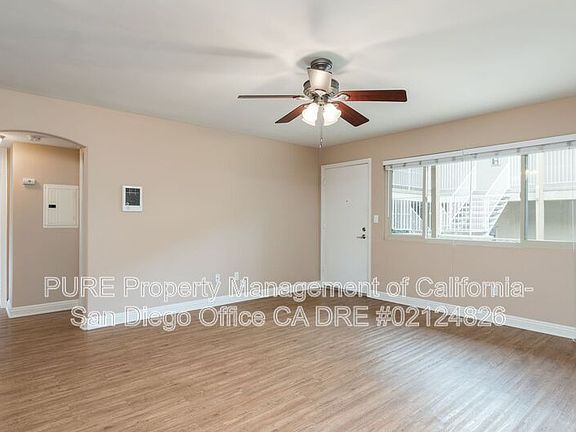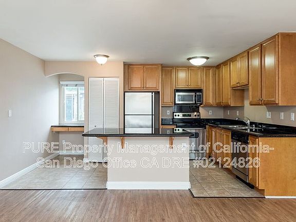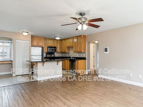 Discover this ideal home in this charming ground-floor end unit in a gated complex in San Diego, just a stone's throw from USD, shops, and the trolley. Spanning 750 SqFt, this inviting apartment features an open-concept living space that seamlessly connects the spacious living room to the large kitchen, perfect for both entertaining and everyday living. The kitchen boasts stunning granite countertops, a convenient island, stainless steel appliances, and even a built-in desk for those who work from home. NEW CARPET THROUGHOUT and MOVE-IN READY! Offers two comfortable bedrooms with plush carpeted flooring, sharing a stylish ensuite bathroom complete with a shower/tub combo. Non-smoking property. Pets allowed upon approval. Step outside to enjoy the serene interior courtyard adorned with palm trees and a tranquil water feature, creating a peaceful retreat just steps from your door. Other features include a washer/dryer and two parking spots with storage spaces and lots of street parking. Trash and water included. With easy access to Interstate 5 and 8, and minutes away from the beautiful Mission Bay and Fashion Valley, you'll find yourself surrounded by parks, shops, and dining options that make this location truly unbeatable. Don't miss this opportunity to experience the best of San Diego living! Listing and marketing information provided is deemed reliable and accurate but not guaranteed - agent, broker, and resident should confirm all property information and specifications before entering rental agreement. Visit our website to review our rental criteria prior to submitting an application. A $54 non-refundable application fee per adult will be charged. Every person over 18 who would reside at the property must complete and submit a rental application. We are a fair housing provider. All applicants will be subject to the same application criteria. For REDUCED move-in costs, talk to us about our Security Deposit Waiver Program! Enjoy the benefits of the Resident Benefits Package (RBP), tailored to your needs. Choose from our tiered pricing options, starting at just $25.99*/month. Your RBP may include: -Liability insurance -HVAC air filter delivery (for applicable properties) -On-demand pest control -And more! Contact us today to learn more about the RBP tiers and find the perfect fit for you. *We do not accept applications from any 3rd party service including Zillow. Please apply on our website directly. PURE Property Management of California DRE #02124826 Amenities: Ground floor, Water and Trash Included, Washer/Dryer in unit, Stainless Appliances, Granite Counters, Gated Community, 2 Parking Spaces, Ceiling Fans, Large Patio