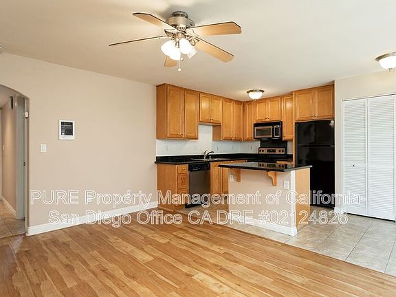 Welcome to this desirable gated complex, perfectly situated in San Diego, just moments away from USD, shops, and the trolley. This one won't last long at this price! This inviting 1-bedroom, 1-bathroom apartment offers 568 SqFt of modern living space, featuring an open-concept layout that seamlessly connects the cozy living room to the stylish kitchen. The kitchen boasts a convenient prep island, elegant granite countertops, and high-quality appliances, all complemented by a soothing neutral paint palette that enhances the warm atmosphere of the home. Retreat to your spacious bedroom, complete with plush carpeted flooring, a generous walk-in closet, and an ensuite bathroom for added convenience. Step outside to enjoy your own small, private patio, perfect for sipping morning coffee or unwinding after a long day. Other features include a washer/dryer and one reserved, covered parking spot. Trash and water included. No smoking. Pets allowed with additional fee. With easy access to Interstate 5 and 8, and just minutes from Mission Bay and Fashion Valley, this apartment is ideally located near parks, shopping, and dining. Don't miss the opportunity to rent this delightful home! Listing and marketing information provided is deemed reliable and accurate but not guaranteed - agent, broker, and resident should confirm all property information and specifications before entering rental agreement. Visit our website to review our rental criteria prior to submitting an application. A $54 non-refundable application fee per adult will be charged. Every person over 18 who would reside at the property must complete and submit a rental application. We are a fair housing provider. All applicants will be subject to the same application criteria. Enjoy the benefits of the Resident Benefits Package (RBP), tailored to your needs. Choose from our tiered pricing options, starting at just $25.99*/month. Your RBP may include: -Liability insurance -HVAC air filter delivery (for applicable properties) -On-demand pest control -And more! Contact us today to learn more about the RBP tiers and find the perfect fit for you. *We do not accept applications from any 3rd party service including Zillow. Please apply on our website directly. PURE Property Management of California DRE #02124826 Amenities: Gated community, Spacious kitchen, Granite counters in kitchen & baths, Convenient on-line payments, Near freeways, Near shoppings, Washer/ Dryer
