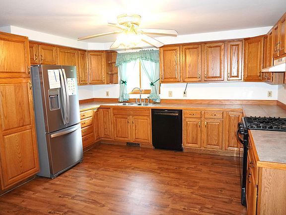 Super-sized garageWalk-in pantryOak cabinetryEnclosed porchLaminate floorsNewer appliances
