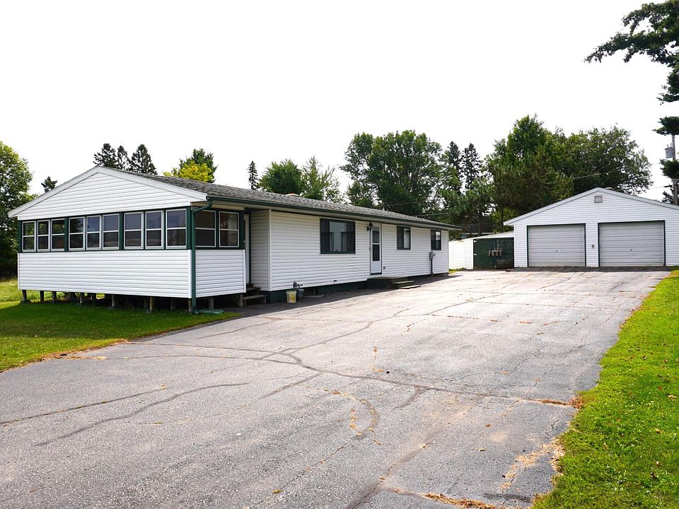 City conveniences with a rural feel. Cotter Ave dead ends at this property on .28 acres. This Wisconsin home was delivered to the site and placed on a full block basement. Eat in kitchen is surrounded by oak cabinetry and newer appliances. Just off the kitchen is a walk-in pantry. The laundry area has a large closet and next to the half bath. Large living room with a picture window facing south has a walk in storage closet on the north end and coat closet by the front door on the south end. Laminate floors flow through the entire main level. 4 sizeable bedrooms with closets. Full bath has shower over the tub, medicine cabinet, pretty vanity with large sink and linen closet. The basement has finished walls making a family room, office, exercise room, craft room, and utility area. Along the north side of the home is an enclosed porch with windows all the way around, wood floor, and two entry doors. Super-sized garage has 2 overhead doors and a side service door.