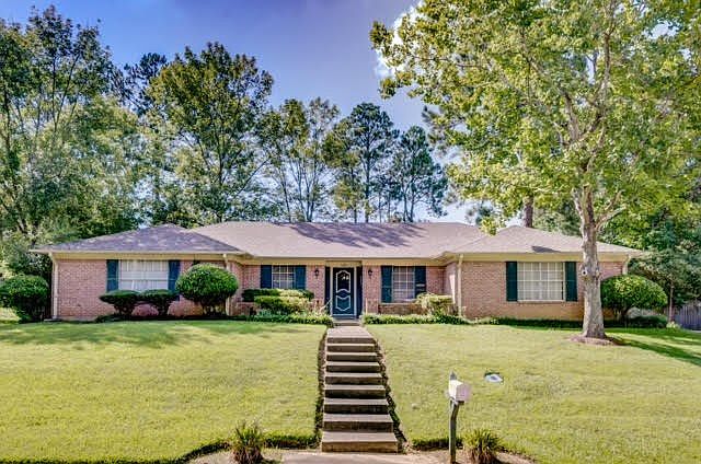 Family home featuring 4 bedrooms, 2 baths, foyer, formal room could be used as a formal living or dining space, family room with vaulted, beamed ceiling and fireplace, kitchen has walk-in pantry, double oven, buffet/serving space with built-in china cabinet, breakfast area & large picture window looking out over the huge privacy fenced back yard with patio, separate laundry/utility room & 2 car garage