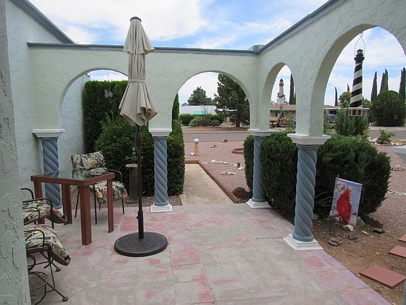 Very nice Santa Fe style home in Sunsites Village. Newer appliances and water heater. Pantry and lots of cabinets in kitchen. Fireplace in living room. New paint and ceiling fans throughout. Screened gazebo, garden/storage shed and covered patio in fully fenced backyard. Automatic water system in front yard.. Work bench and additional storage in garage. This lovely home has been well cared for and is move in ready. Charming rural community with many amenities including shopping, medical and restaurants. Lots of sightseeing and hiking nearby. Tucson and Tombstone about an hour away. Come enjoy the great weather in the high desert.