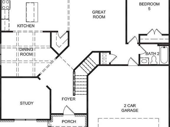 First floor guest suite with full bath.Study perfect for working from home.Open concept gourmet kitchen opens to breakfast area and family room with fireplace.Dining room with coffered ceilings.Homeowner's suite with an expansive walk-in closet, two separate vanities, linen closet, soaking tub and oversized shower.Upper level laundry.Home and community information, including pricing, included features, terms, conditions, availability and sales procedures related to appointments subject to change without notice. All images are for illustrative purposes only and individual homes, amenities, features, and views may differ. Delivery dates are approximate and subject to change without notice. Images may be subject to copyright.