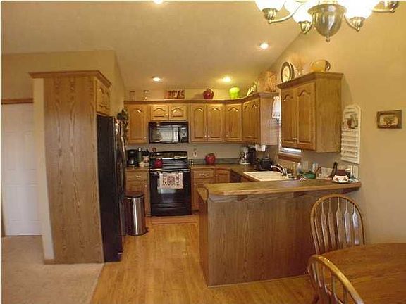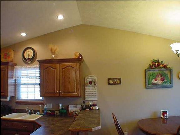 Like new home with oak cabinets and interior doors,raised eating bar, built in microwave, oak trim and vaulted ceilings. Master bedroom has coffered ceiling. Basement is partially finished with a rec room and ready for your additional custom electrical and drywall for a bath and another bedroom too. Patio looks out over undeveloped acreage and located on corner lot. Great value! Call now!
