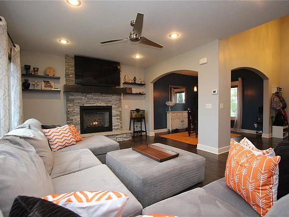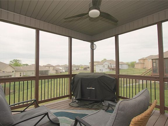 This 2 Story home features 5 Bedrooms and 3.5 Bathrooms. FALL IN LOVE with the open floor plan, stone gas firplace, formal dining room, and a CUSTOM CHEFS kitchen featuring upgraded stained cabinets, Quartz countertops, Subway tile backsplash & TOP OF THE LINE Chef series Black stainless appliances! The spacious master suite boast a full tile shower, jetted tub & walk-in closet. There are three more bedrooms, a full bath, and a laundry room with cabinets on this upper level. The basement features a family room, electric fireplace, 5th bedroom and full bath. Enjoy watching the sunsets on the screened in porch overlooking the 5ft black aluminum fenced back yard. Located in Award winning Cayhill subdivision with two subdivision lakes & easy access to Whiteman AFB & 50 highway.