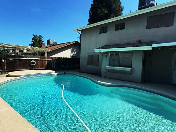 Home Sweet Home! This 2 story home located in a great neighborhood showcases plenty of room to grow and a sparkling swimming pool ready for you and your family! Featuring all 4 bedrooms located upstairs, and 3 full bathrooms with 2,344 sq. ft. of living space. Downstairs you will find a welcoming entryway with tile flooring that continues on into the large living room and family room areas. There is a dining room, an indoor laundry room with a sink, the kitchen has a newer gas stove, coffee bar area, pantry, dishwasher, trash compactor, and tile countertops with a beautiful view of the lovely in ground swimming pool. The room near the kitchen that is currently being used as a dining room, can also be used as a family room instead, it is the perfect size for large family gatherings with 2 built in bookshelves and a wood burning stove! The sliding glass doors will take you out to the covered patio area along with the beautiful fenced in-ground swimming pool. This backyard is made for entertaining family and friends while enjoying nice summer BBQs and a dip in the pool! As we venture upstairs, you will find all 4 bedrooms including the master suite with double closets, and a master bathroom with a walk in shower. The master suite also includes French doors that open up to a private balcony facing the front yard to enjoy your morning cup of coffee while you enjoy the sunrise. Down the hallway you will find one bathroom and 3 guest bedrooms. The attached and finished 2 car garage is right off the laundry room area and there is plenty of RV parking off to the side of the driveway. The home also features solar panels and is located in a very nice neighborhood. There are so many possibilities to make this house your new home! Contact your Realtor today to schedule your private showing!