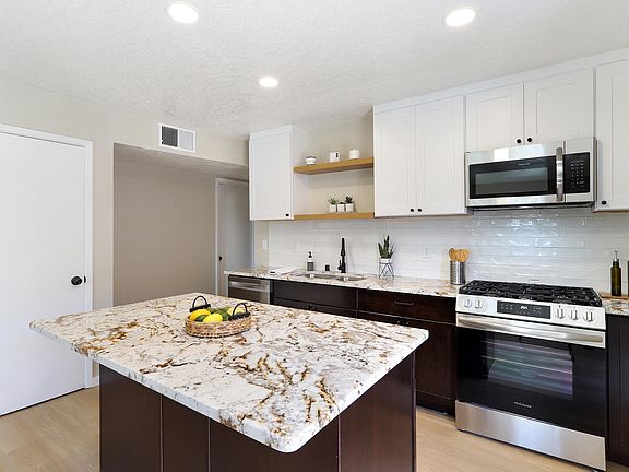 This beautifully updated home is a true gem, offering modern living with thoughtful details throughout. The spacious living room features a cozy wall fireplace, perfect for unwinding. The kitchen is a chef's dream with stunning granite countertops, new cabinets, a gorgeous backsplash, and sleek shelving for a contemporary touch. A large island makes meal prep easy. With a new TPO roof, remodeled bathrooms, fresh LVP flooring in living areas, new carpet in bedrooms, upgraded fixtures, and many more improvements, this home offers comfort and peace of mind. Located in a desirable area with easy access to parks, shopping, and dining, this home is ideally situated for convenience. A must-see gem!