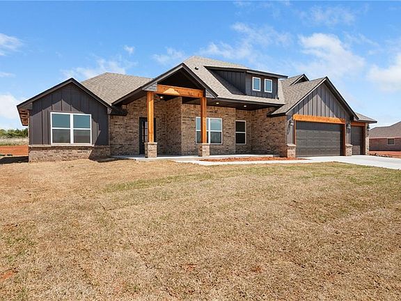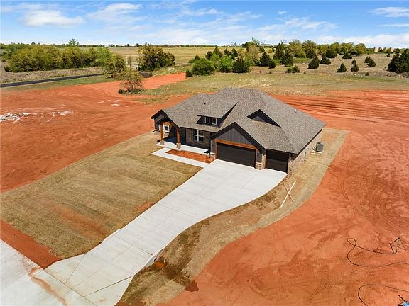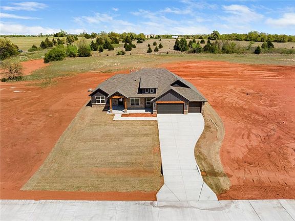 This magnificent home on 1.25 acre (m/l) from RT Quality Homes will blow you away! Enjoy the gorgeous ceramic wood look flooring throughout the open living room and kitchen areas. The study area could be a great additional 4th bedroom or perfect for your home office. The details of the fireplace in the living room are beautiful! Kitchen boasts stainless steel appliances, granite countertops, an island with room for seating, and plenty of cabinet storage! The rooms are spacious and all have carpet throughout. The master suite features a bathroom with 2 separate vanities, granite countertops, walk-in shower, and a walk-in closet! Spacious laundry room! The backyard features a relaxing covered patio and a huge backyard! Enjoy this 1.25 acre (m/l) to play, entertain, or just enjoy a cup of coffee to the Oklahoma sunrise! BUILDER OFFERING $5,000 TOWARDS CLOSING COSTS OR UPGRADES! CONCRETE ROAD & SHOPS ARE ALLOWED UP TO 30'X50'! **PLANS, SPECIFICATIONS, DETAILS AND PRICING SUBJECT TO CHANGE WITHOUT NOTICE**