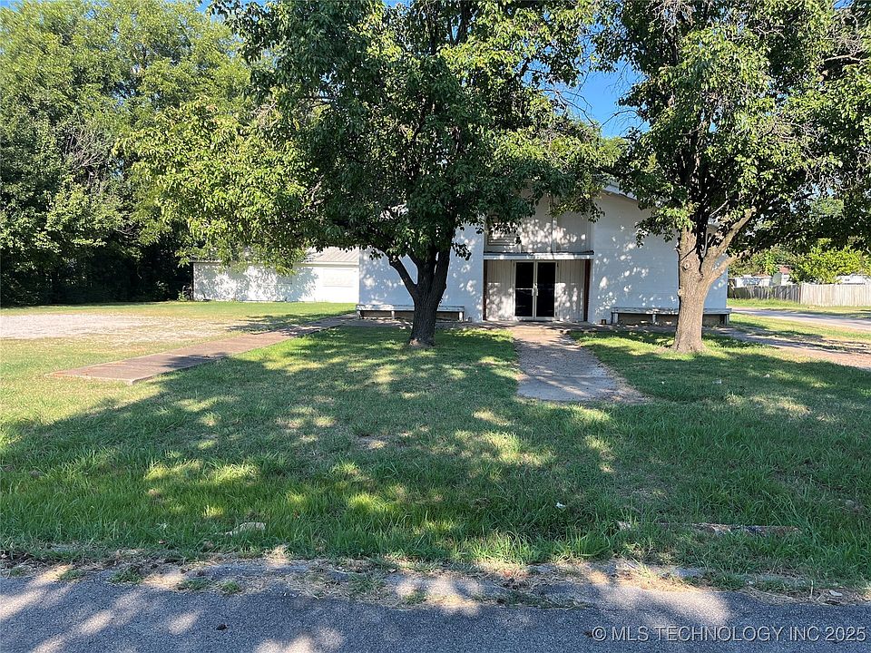 Great buy on a (commercial multi-purpose) bldg in Okmulgee to use any way you want. Retail space, warehouse use, office space. Previously used as a church bldg - large front room used for meetings, several rooms/offices, 2 restrooms and kitchen. Metal roof. All utilities are connected and working. 3 central units upstairs available for extra storage. WORKING ATTIC FAN