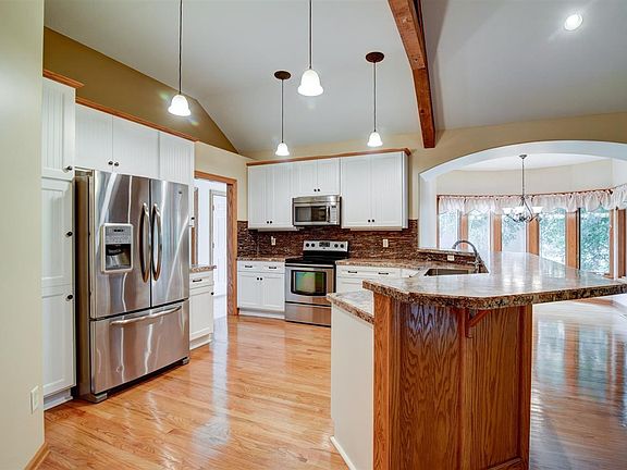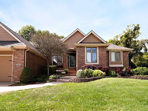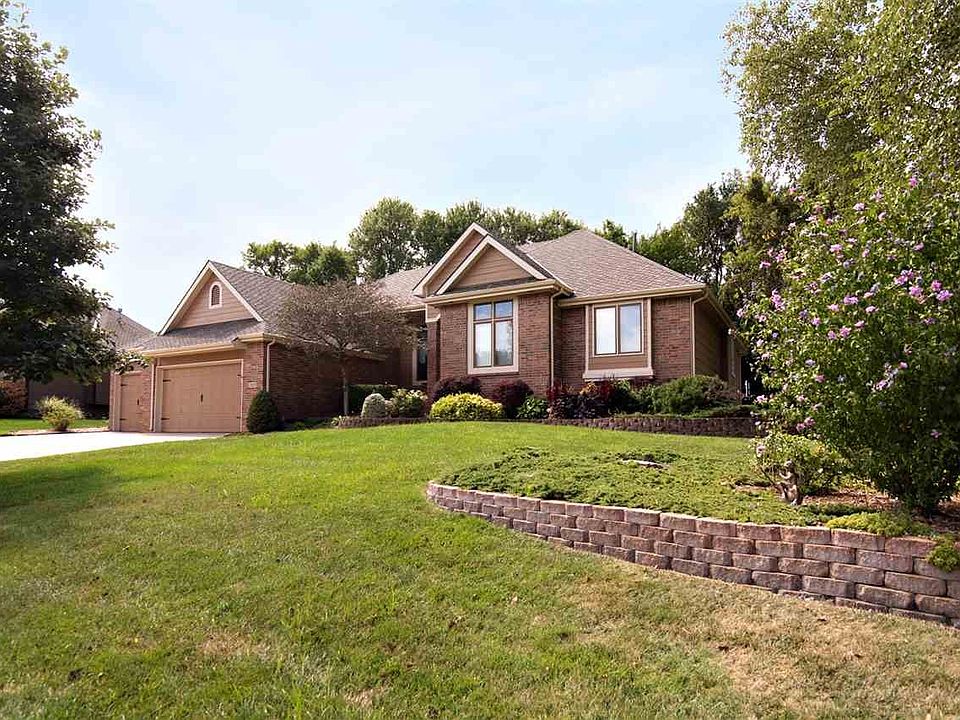 Over 3400 finished sq ft in this lovely Hickory Creek Ranch in desired Maize Schools. Inviting front porch, professional landscaping, mature trees on huge wooded lot provide great curb appeal. As you enter, the living space includes Formal Living Room and Dining Room. The majority of your family time will be spent in the cozy Hearth Room/Kitchen combo with amazing hardwood floors, vaulted & beamed ceilings. Bay windows offer nice views to the beautiful shaded backyard + built-ins surround the brick gas Fireplace. The chef's Kitchen sports newer white cabinetry, Pantry, Eating Bar, Breakfast nook (more bay windows) and all appliances stay. You will find bay windows in the large Master Bedroom with coffered ceiling and access to the backyard deck. Master Bath features 2 sinks & vanities, separate jetted tub, stand-alone shower, tile floors and a huge walk-in closet. Large Mud Room on the main floor contains a convenient half bath, storage, folding space and door to outside & garage. Rounding out the ground floor are 2 additional BRs and the Hall Bath. Additional large living space in the Walk-Out/ View out basement with a big Family Room, gas Fireplace, wet bar + plenty of space for game tables. The 4th & 5th big bedrooms, the 3rd Full Bath + 3 storage rooms complete the lower level. Covered deck, open patio, wrought iron fence, sprinkler system, well, lots of mature trees. New roof, downspouts, gutters, gutter covers. Two HVAC systems, New exterior paint. Sellers have Choice Home Warranty in place to 2023, transferable to new owner. Don't miss out on this beautiful westside Ranch!! You will want to add this amazing home to your list of "must sees"!! - Call to schedule your private showing today!