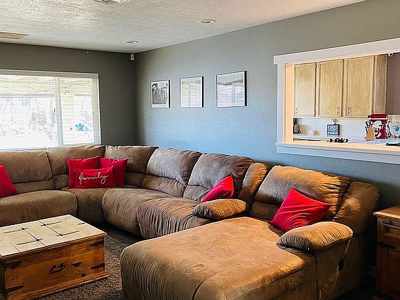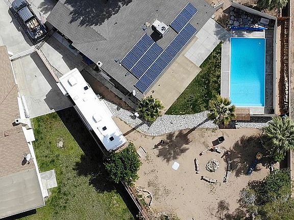 Nestled at the end of a cozy cul-de-sac and an over sized yard, there is so much to love about this home. The backyard is private and serene with a covered patio, lush lawn, fire pit, and a large pool. It is the perfect spot to entertain guests or relax after a long day. This home offers a bright floor plan with a spacious living room, an open kitchen and dining area with a wood burning fireplace. Kitchen has two large pantries, large cupboards, and newly installed stainless steel dishwasher and electric cook top. Recently remodeled guest bathroom with jetted tub. 3 large bedrooms and a master suite with a walk-in closet and direct access to the backyard. Home includes dual-pack (central A/C and swamp cooler). 2 car attached garage with additional RV parking. Owned solar to reduce those electrical bills. Don't miss the chance to own this home and create forever memories with your family.