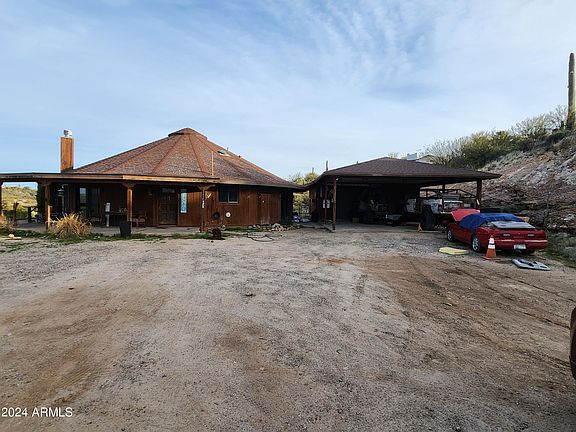Back on the Market, Don't miss out on this DIAMOND IN THE ROUGH... Offering unparalleled views, this 3-bedroom, 2-bath fixer has a unique octagon shape that sets it apart. With an expansive garage/shop and convenient carport, it's a haven for welders and builders alike. Ideal for equestrian enthusiasts, the property includes a small horse setup, perfect for seasonal residents or full-timers. Enjoy easy access to community roping arenas and the picturesque Hassayampa River, making this a must-see for those seeking both tranquility and adventure.