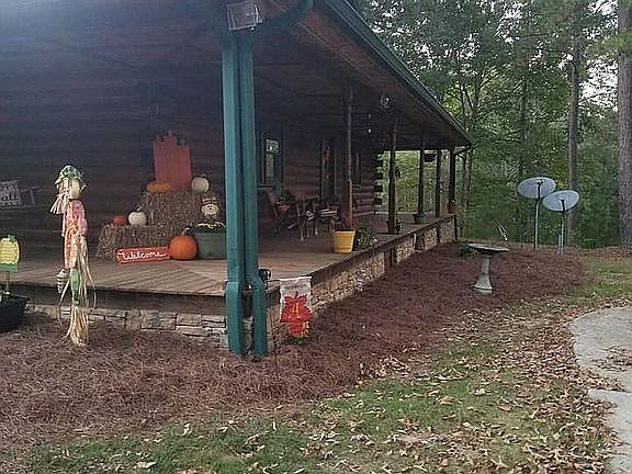 Beautiful Log Cabin on 10 acres with an open floor plan. Great for entertaining and family gatherings. Fairly new kitchen appliances! new hot water heater(3yo). The central heat and air unit is 7 years old. Home has a wrap around porch and a great view of the yard with a creek fed pond. Pond does have fish in it! Bass and brim.