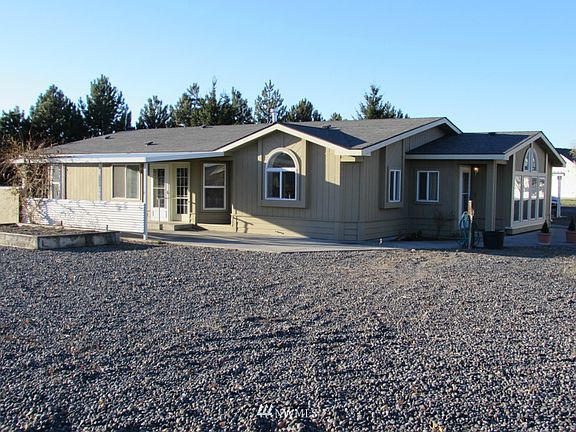 Located near Moses Lake Golf Club, this move-in ready, 2,900sf+/- triple-wide home sits on 1 acre. Quiet street, easy I90 access. Enclosed breezeway, 700sf Bonus Room. 3-car attached garage. 36'x48' SHOP with 2-12' drs. Spacious Formal Dining & Living Room. Large Kitchen opens into Great Room w/gas stove. French doors open to a covered patio. Raised planting beds, UGS, low maintenance grounds. Freezer & fridge in garage stay. New 30-year roof & extr paint, curb cut from Rd. F for added access.