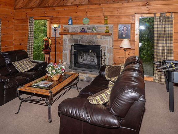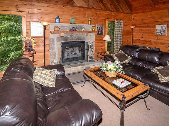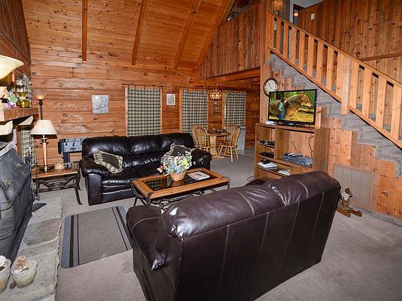 2 bedroom, 2 bath cabin in Chalet Village with a wooded view and private setting. The main level of this home has a nice open floor plan and a wood burning fireplace in the living room, and cathedral ceilings with exposed beams. Comes fully furnished and the kitchen is fully equipped. Already setup great for overnight rental or a 2nd home!
