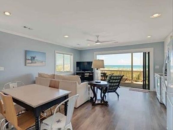 Your beach oasis awaits! BEACH FRONT DUPLEX on a spacious oceanfront lot in the highly sought-after South Topsail Beach neighborhood. Many modern upgrades! The perfect getaway for families looking to enjoy a relaxing retreat on some of Topsails' most pristine beaches. This beautiful home has a cozy, comfortable living space all on one level! Inside you will be greeted with panoramic ocean views from the 10' wide glass door system that completely opens up the living room into the private oceanfront deck. The modernized kitchens come fully equipped and are composed of custom cabinets, Carrera marble countertops, inspiring tile backsplashes, farmhouse sinks, and new stainless steel appliances. Impressive woodwork is found throughout with custom wainscoting and crown molding in every room. Property includes: 3 bedrooms / 2 Baths (Sleeps 6) 1 King,1 Queen, and 2 Twin Mattresses Wi-Fi Throughout Entire House (shared between both sides of the duplex) 1 -48" inch LED Smart TV in the living room 3 -40" inch LED Flatscreen TV's in each bedroom Central Heating & Air, Ceiling Fans, Washer/Dryer (under house), 10' Custom-Built Panoramic Door System that fully opens to create a unique indoor/outdoor living experience Oceanfront Wrap-Around Deck with Patio Furniture Ample Parking for up to 4 cars Charcoal Grill included for outdoor cooking Come create unforgettable memories and experience the beautiful beaches of South Topsail. We are excited to share this home with you and help make this experience a lasting memory. OTHER THINGS TO NOTE: RATES INCLUDES: Rent, Linens (including comforters, blankets, pillows) and departure cleaning (not included with monthly rentals) . Pet friendly. IF YOU ARE PLANNING TO BRING A PET - an additional pet fee of $300 will be collected, please notify Sea Coast Rentals. Absolutely no events such as weddings, sororities,fraternities,bachelor or bachelorette parties etc... NO Smoking. Available for rent by the week during the summer months Saturday - Saturday. Monthly reservations during the off season (mid -Sept to mid - May). **Paper towels and toilet tissue, trash bags, soaps, detergents, minimal cleaning supplies, beach towels, and any specialty items are NOT provided and would need to be brought with you, or bought once you arrive on the island. ENHANCED CLEANING: We follow CDC cleaning guidelines and ensure all high touched areas have been wiped down with disinfectant spray. GUEST ACCESS: Electronic entry. Our properties are individually owned and our guests will have use of the entire property! ARRIVAL & DEPARTURE: SUMMER CHECK-INS begin at 4:00PM and end at 5:00PM. Topsail Beach office ends at 5:00PM. OFF SEASON CHECK-INS: begin at 3:00PM and end at 5:00PM. Topsail Beach - Check In's may go directly to their property after 4:00 PM CHECK OUT: Is before 10:00AM. We adhere to this policy so please do not arrive early or plan to delay your departure