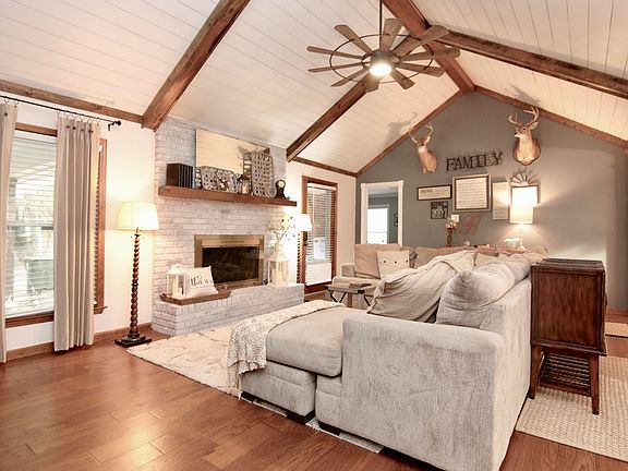 Welcome to Fairlawn Barony, a riverside community in the heart of town situated near Lake Moultrie, public water access, state-of-the-art recreational facilities and a small-town vibe. This home features a classic brick exterior with a true southern-style full front porch, but once you step inside, you will love the major updates throughout. The foyer has wainscotting accents and leads you into the large living room and kitchen. The living room is open with vaulted beamed ceilings, white-washed fireplace and wood flooring. Around the corner is a fully renovated kitchen with beautiful antiqued cabinets, granite countertops, two pantries-one that is a walk-in, plus an eat-at counter, dining room area and has so much natural lighting,The one-story floor plan has a split owner's suite with a sitting area, private morning porch, two walk-in closets and a dream of a bathroom featuring a huge walk-in glass surround shower, claw-foot style soaking tub, and double-sink custom-wood vanity. The other side of the home has 3 additional bedrooms. One bedroom is the second owner's suite and has a private bathroom with a tub/shower combo and large closet. The two additional bedrooms have wood floors and share a bathroom. A door from the living room leads to the large yard with lots of parking. A covered patio would make a great cooking shed-throw the tv and some chairs and you have the perfect outdoor family room. The gorgeous trees provide plenty of shade and the shed is the perfect spot to store all of your tools. This is the perfect home to move in and enjoy life in the lowcountry. Buyer to verify anything deemed important. There are no restrictions so bring you boat and RV and keep them in your yard.