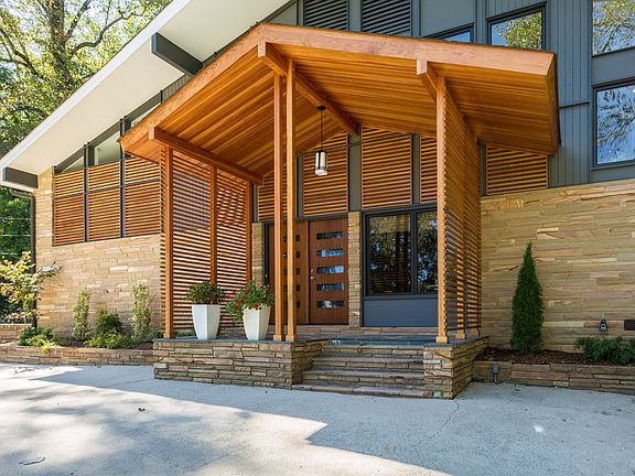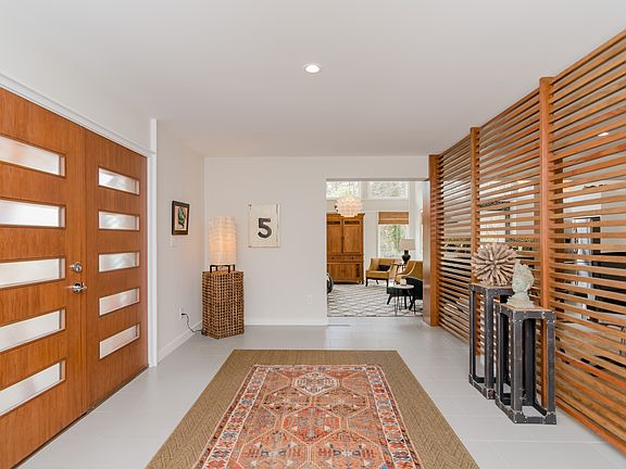 MODERNIST RETREAT on 1.68 acres, 10 minutes to Franklin St. Flexible interior, filled with light and views of nature. New custom two-car garage: steel & glass overhead doors, and fir sliding panels doubles as a cabana! Dappled light dances across the lush back yard with patio. Wake to views of the woods, & enjoy coffee on the balcony. Owners bath with dual vanities --don't miss the window seat in the shower! Lower level flex space has sep entry. New modern fence with stone columns & bowl planters