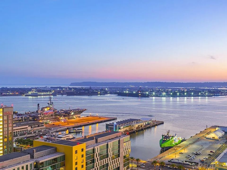 Welcome to the Art of Living on Millionaire's Row. Perched on the 29th floor, this stunning 2-bedroom, 2-bath plus den residence offers panoramic views that will take your breath away, from the majestic Pacific Ocean and San Diego Bay to the iconic Coronado Bridge and the picturesque Inlet of Point Loma. As you enter, you'll be greeted by an expansive living space designed for both relaxation and entertainment. The large view patio, accessible through elegant French doors, is perfect for hosting gatherings, enhanced by a state-of-the-art surround sound system. The custom-designed closets provide ample storage, while the chef's kitchen, equipped with all stainless steel appliances, granite countertops, and a walk-in pantry, is a culinary enthusiast's dream. Retreat to the newly designed primary bathroom, where luxury meets functionality with custom built-ins, quartz counters, and timeless tile. Every detail has been meticulously crafted to create a serene and sophisticated atmosphere. Imagine watching sailboat regattas dancing on the water from your living room and experiencing shimmering sunsets from your patio, adding a touch of maritime charm to your daily life. This condo offers more than just a home; it provides a lifestyle. Enjoy access to a lap pool and spa, a fully-equipped fitness center, and an owner's club room. With 24-hour security and concierge services. Welcome Home!