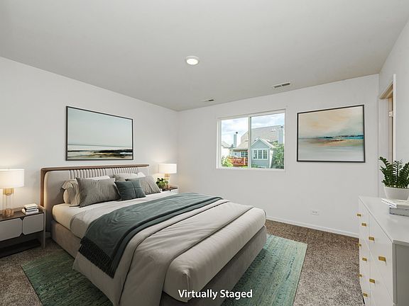 DON'T MISS YOUR CHANCE!!! One of the last homes available in West Lake without a basement. Why spend over $50,000 more when you can have this better than new construction home? Move-in ready, can close quickly and already includes a refrigerator and washer/dryer! With over 1300 sf, this Bradwell model includes an open concept kitchen featuring SS appliances, beautiful white cabinets topped with crown molding, center island with eating spaces, and a sizable pantry. The kitchen flows effortlessly into the great room with door to the tranquil backyard and is perfect for entertaining. The main level also includes direct access to your 2 car garage, ample storage, and a powder room. The second floor opens to a loft that is perfect for a home office or sitting/gaming area and includes a convenient laundry room, large linen closet and full secondary bedroom and bathroom. The oversized primary suite features a huge walk-in closet and a light bright full bath with walk-in shower. Builder features include Smart Home Technology allowing you to monitor and control your home from the comfort of your sofa or from 500 miles away and connects to your home with your smartphone, tablet or computer, Energy Efficient Features throughout, and remaining warranty. Nearby to the neighborhood park, walking/riding paths, and conveniently located near shopping, transportation and restaurants, 500-acre Hollows Park with 3 lakes, 3 Oaks beach, and the new Sunburst Bay Aquatic Center (coming summer 2022), the location is perfect! Just minutes away from Metra. Highly rated School District 26 &155.